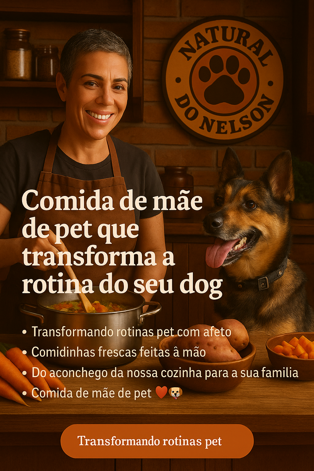 O Natural do Nelson nasceu do carinho entre uma tutora e seu companheiro de quatro patas, o Nelson. Na rotina de preparar suas comidinhas frescas, descobrimos que muitos tutores desejavam oferecer aos seus cães algo feito com afeto, cuidado e verdade, a famosa “comida de mãe de pet”. Somos uma cozinha artesanal, que prepara porções caseiras para complementar a ração e tornar a alimentação dos pets mais saborosa, equilibrada e feliz. Cada receita é feita à mão, com ingredientes frescos e atenção aos detalhes. Acreditamos que alimentar um pet é um gesto de cuidado, e estamos aqui para deixar esse momento ainda mais especial. Natural do Nelson Comida de mãe de pet. Feita com alma & afeto.